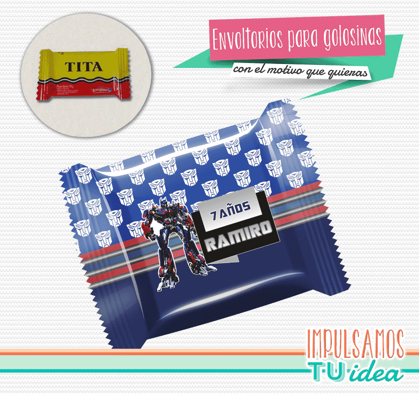 Si te gustó el motivo podemos diseñar otras piezas como: envoltorios para golosinas, tarjetitas, bolsitas, las que necesites para impulsar tu idea. ¡Consultanos!