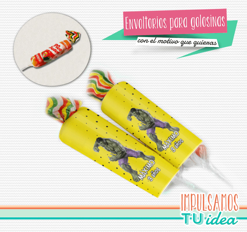 Si te gustó el motivo podemos diseñar otras piezas como: envoltorios para golosinas, tarjetitas, bolsitas, las que necesites para impulsar tu idea. ¡Consultanos!